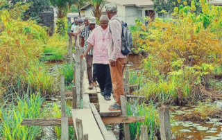 The water in the lake is contaminated with sewage and other pollutants, making it a breeding ground for disease, such as cholera, typhoid, and dysentery. In addition to the health risks, the current situation is also inconvenient and time-consuming for the people of Peace Island. It can take them up to an hour to walk to the market. We are honored to be able to provide footbridges to help improve the lives of the people on Peace Island.